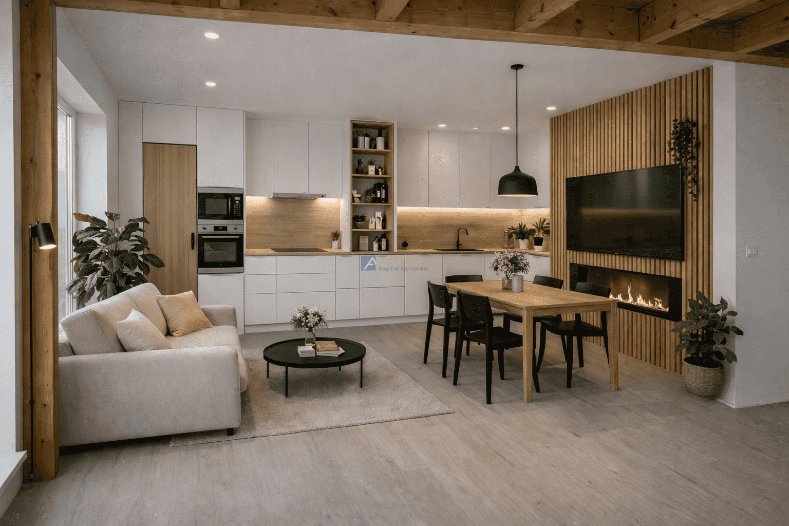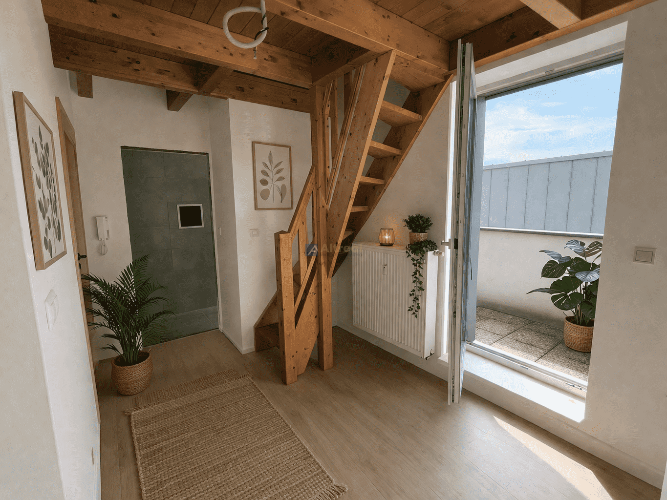Ponúkame na predaj 4 izbový byt s balkónom a terasou v tehlovej novostavbe v Martine na sídlisku Nový Martin. Nachádza sa v nízko podlažnom bytovom dome, vo vchode sú len tri byty a je orientovaný na juh, západ a sever. Byt pozostáva z kuchyne prepojenej s obývačkou, dvoch samostatných obytných izieb, tretia izba sa nachádza v podkroví, kúpeľne, WC, vstupnej chodby. Z obývačky je zabezpečený výstup na juho - západnú terasu, ktorá lemuje celú obývačku a z ktorej je pekný výhľad na celú Malú Fatru a Martinské hole. V vstupnej chodbe je priestor na umiestnenie veľkej vstavanej skrine s priestorom na práčku a sušičku s privedenou vodou a odpadom. Celková podlahová plocha bytu 121,47 m2, predáva sa v stave holobyt. Pred bytovým domom je vyhradené parkovacie miesto, ktoré je súčasťou ceny bytu. Nový Martin je dynamicky rozvíjajúca sa nová obytná zóna pozostávajúca z nových bytových a rodinných domov, poskytujúca príjemné bývanie pre všetky vekové generácie.