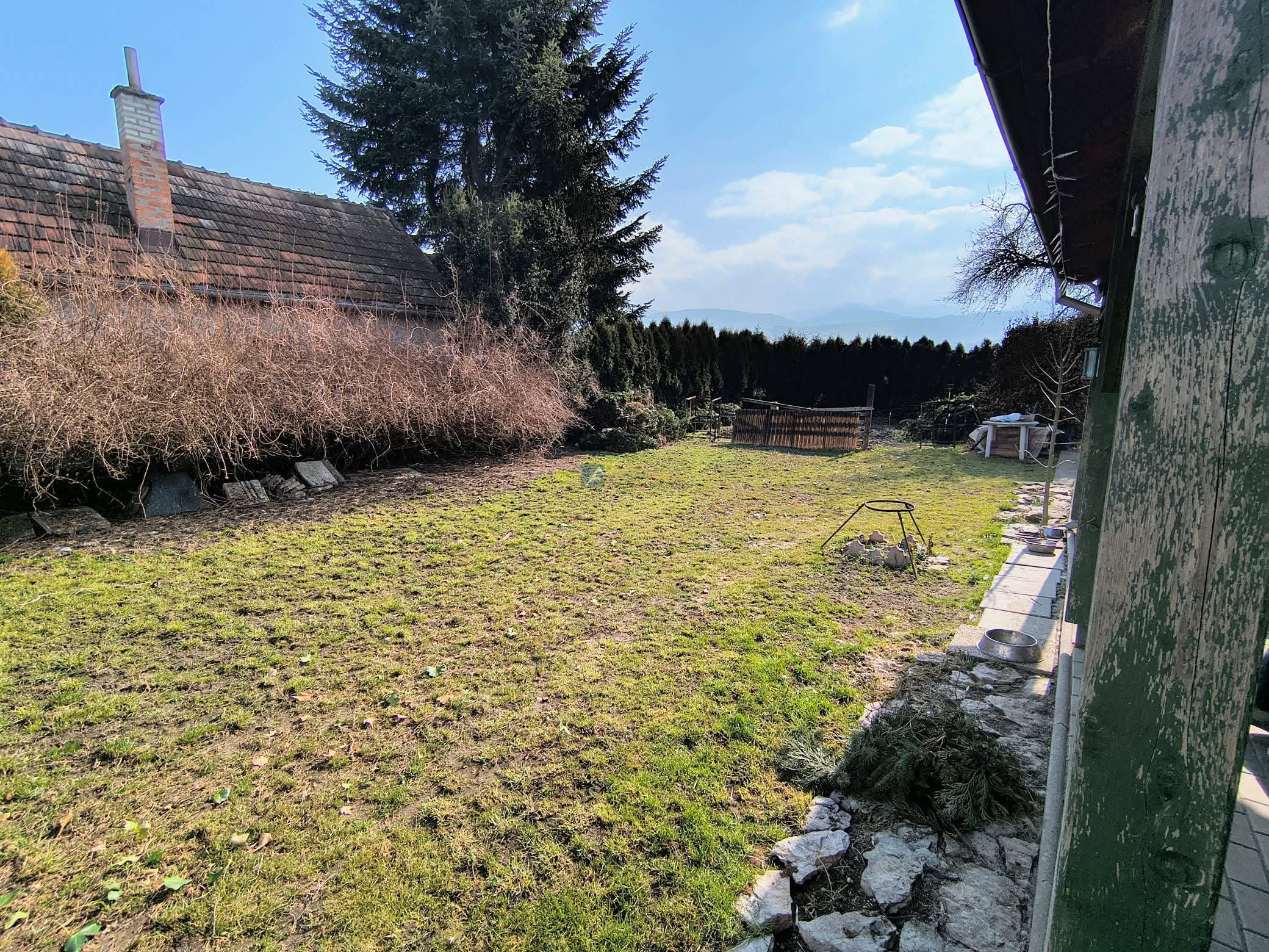 K domu prislúcha upravený pozemok o celkovej výmere 791 m2. Podlahová plocha domu je 180 m2.
